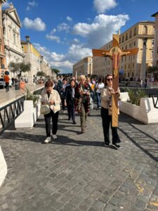 Ganamos el jubileo entrando por la Puerta Santa, (con miles de peregrinos que habían), fue una gozada, después de ir por toda la Via della Conciliazione con una enorme cruz, que nos la íbamos pasando y mientras tanto recitamos salmos, cantábamos y rezábamos el Rosario… ¡conseguimos nuestro primer objetivo!